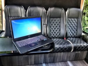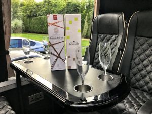 In addition to this there is ample luggage space in the side lockers and boot, so you don’t need to worry about taking that extra bag on your way to the airport. We are also fully licensed to broadcast music and films in our mini coach, so if you want to bring your own music along, you can plug into our sound system or bring a DVD to watch during your journey.