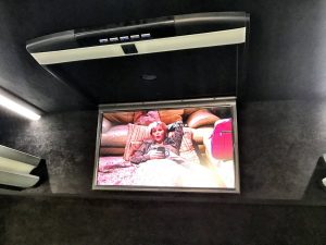 The Entertainment Sound System is provided via Mercedes Benz Audio 15 upgrade Radio/CD with saloon speakers integrated in the passage service units. Two 17” Monitor’s recessed in roof at front and rear with DVD incorporated in dash, PA system with hand microphone and additional pedestal mounted microphone, Ipod input sockets and Bluetooth ready.